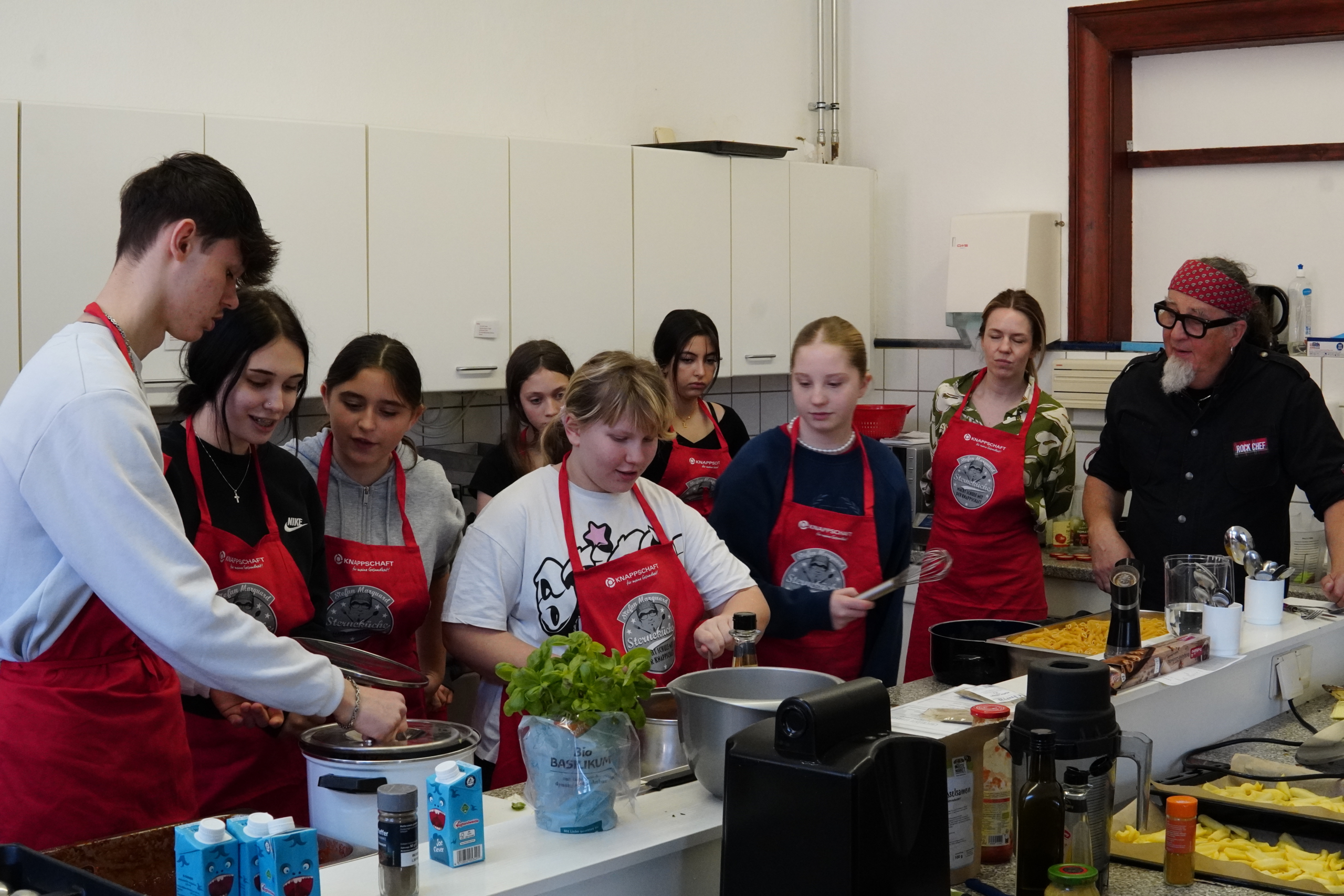 bereits am 08. April konnten wir den Sternekoch Stefan Marquard bei uns begrüßen. Er hat gemeinsam mit unseren Schülerinnen und Schülern ein leckeres Mittagsmenü gezaubert, ganz ohne Zusätze und alles ganz natürlich, einfach und super lecker. Die begeisterten Gesichter aller Beteiligten sprechen hier für sich.